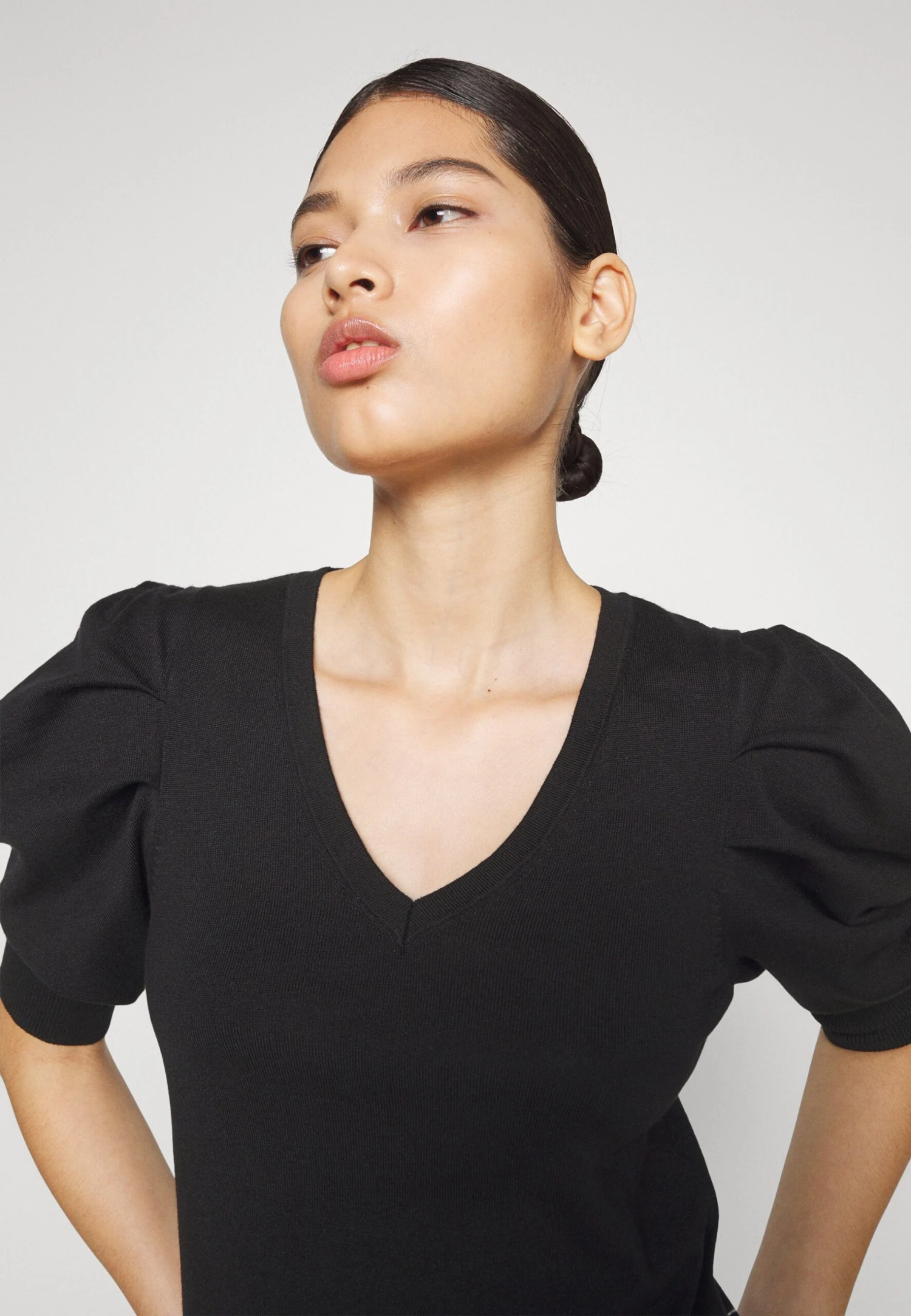 DKNY Vneck Puff Sweater – Basic T-Shirt