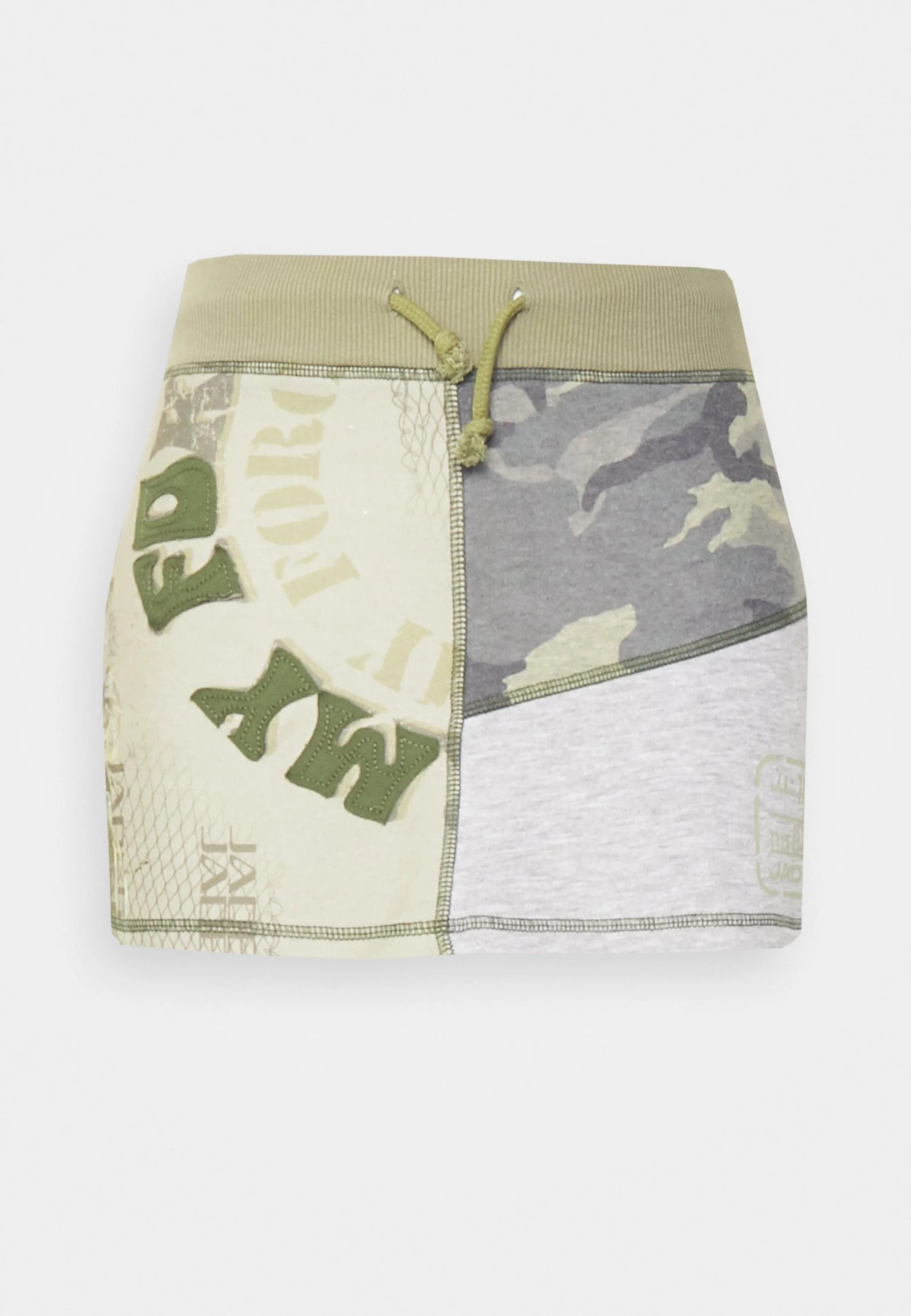 Jaded London Loopback Panelled Mini Skirt With Screen Print – Mini Skirt – Khaki
